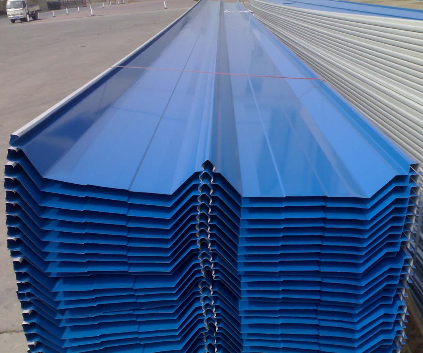 彩色壓型板是采用彩色涂層鋼板,經(jīng)輥壓冷彎成各種波型的壓型板,它適用于工業(yè)與民用建筑、倉庫、特種建筑、大跨度鋼結(jié)構(gòu)房屋的屋面、墻面以及內(nèi)外墻裝飾等,現(xiàn)已被廣泛推廣應(yīng)用。